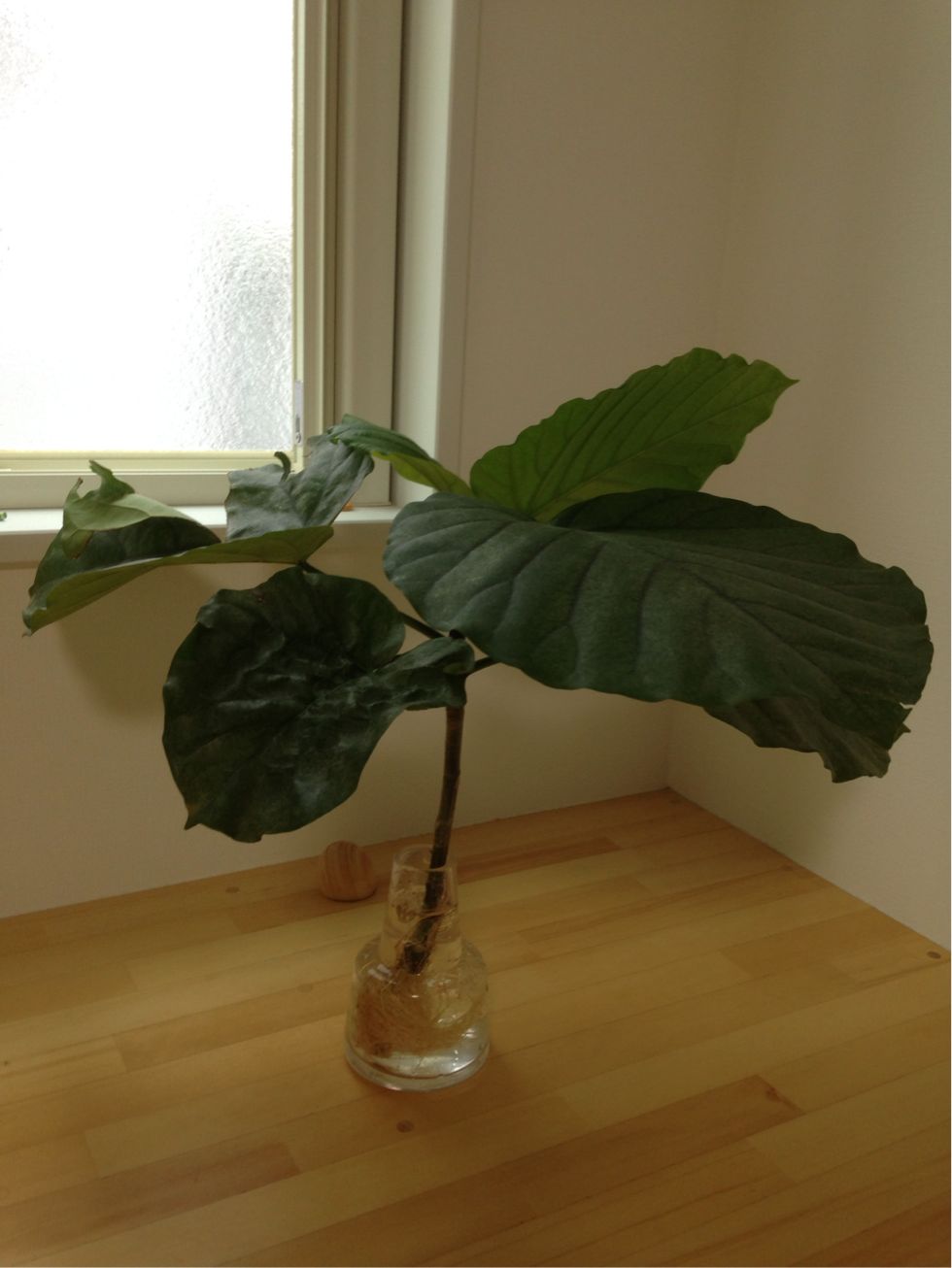 夏の初めに大きくなりすぎて家の中に入れると邪魔でしょうがないウンベラータさんの枝をちょいと剪定。