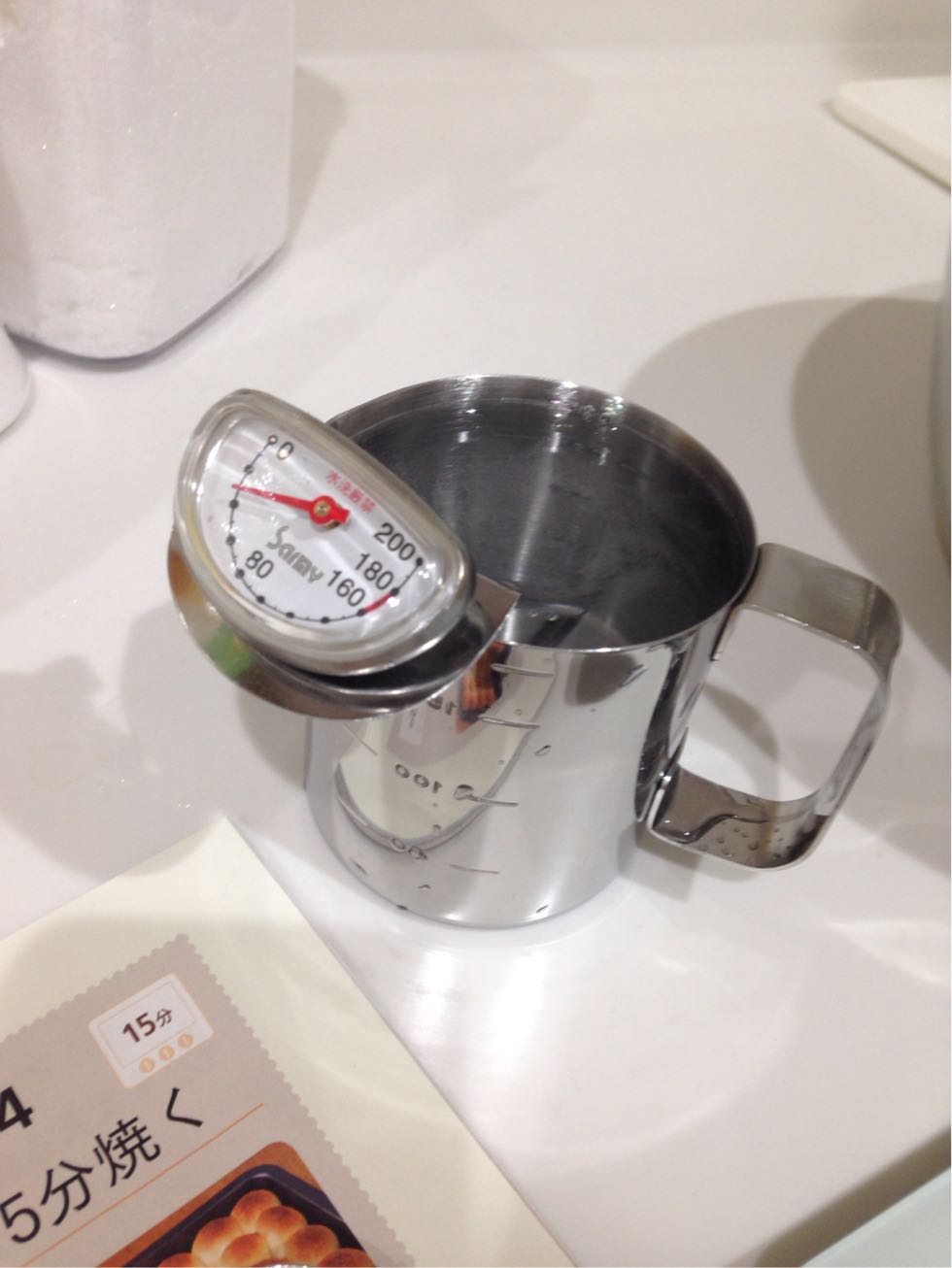 温度計・・・温度計がなかったので100均に行ってみたけど見つけれず。揚げ物鍋に付いてた温度計を使ってないのを思い出し、それを使うことにしました♪