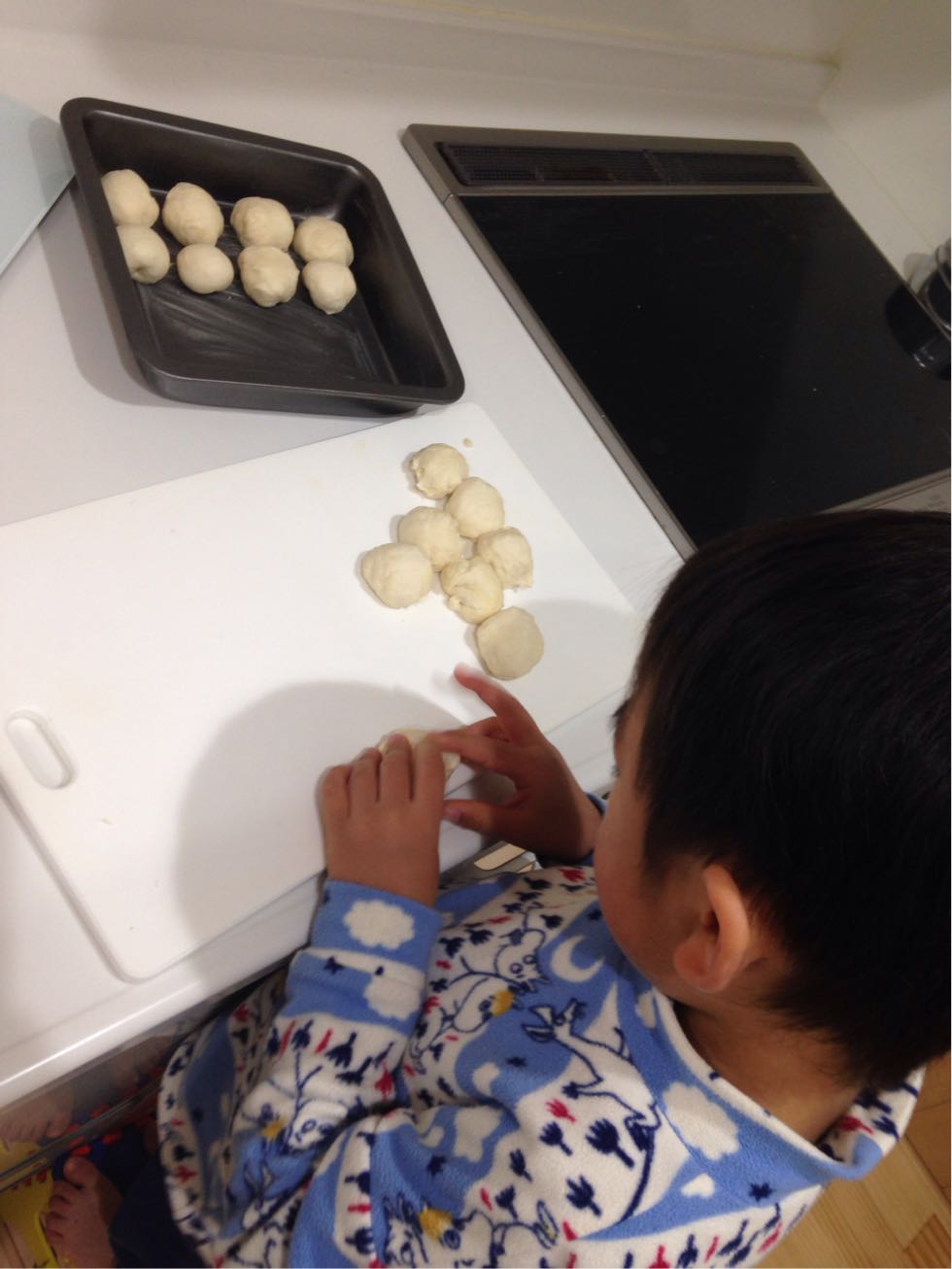 今朝は早速息子とパン作り。