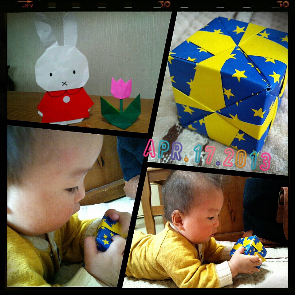 次男坊は私が折り紙を折っている間職員の方にずっと抱っこしてもらっていました。