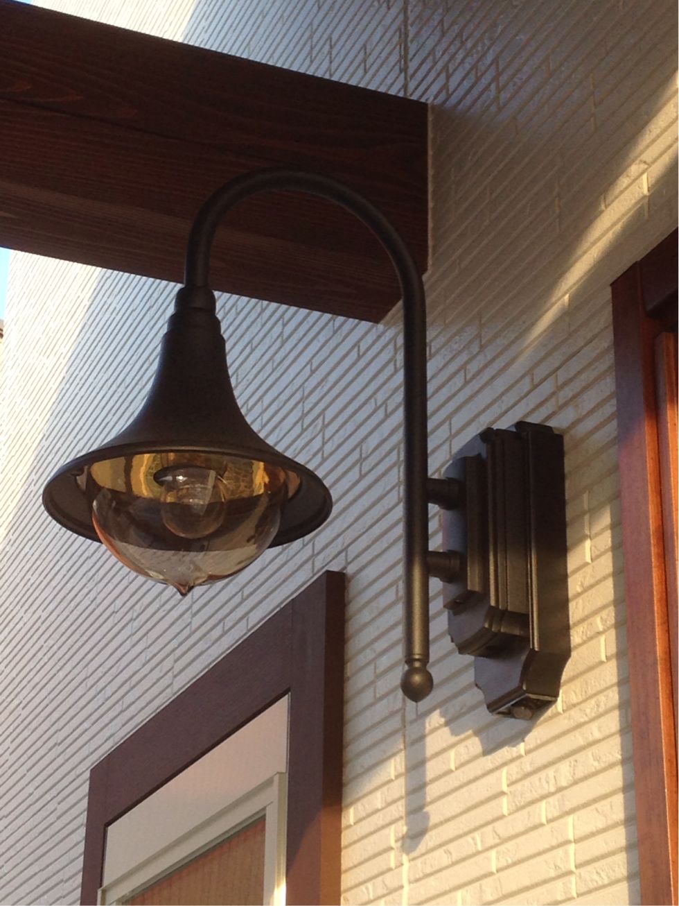 外灯はセンサーで暗くなると点灯するようになってます。