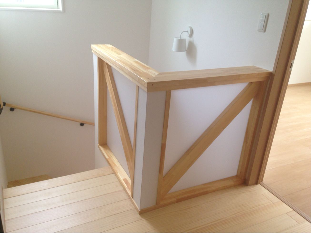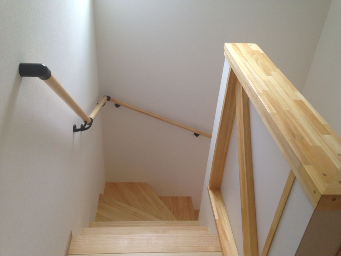 手摺りの留め具?は建具に合わせてナチュラル色に黒。